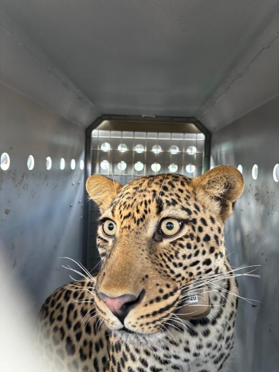 Kahn was caught on a farmland in the North West Province. Unfortunately, the capture cage was not suitable for a leopard, and he broke off all of his baby teeth, trying to escape from the cage.