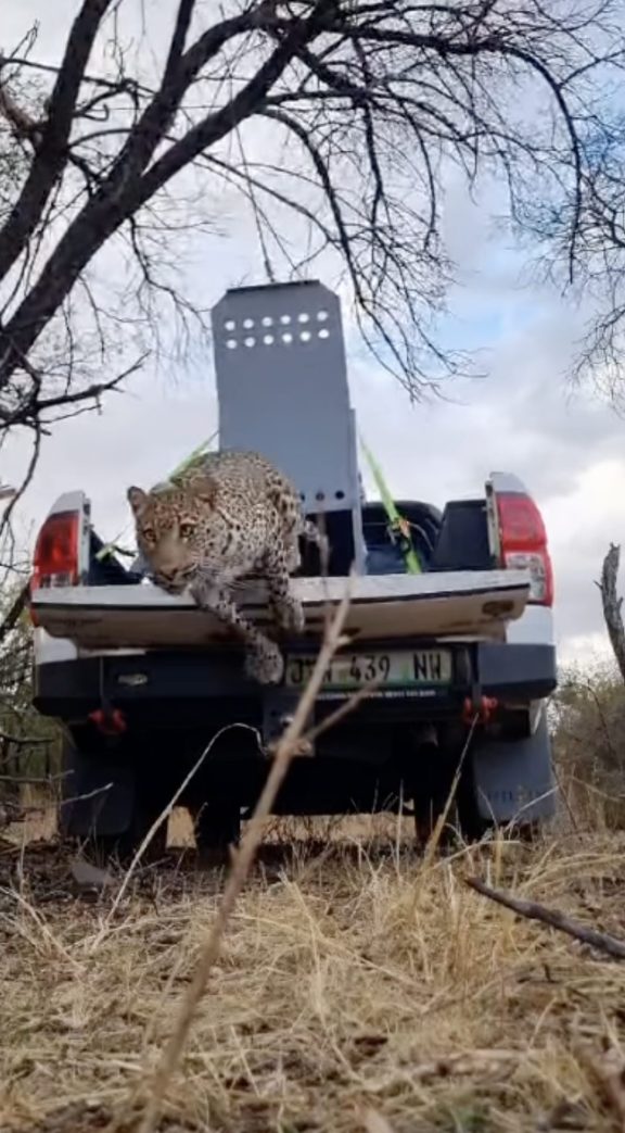 Kahn was caught on a farmland in the North West Province. Unfortunately, the capture cage was not suitable for a leopard, and he broke off all of his baby teeth, trying to escape from the cage.