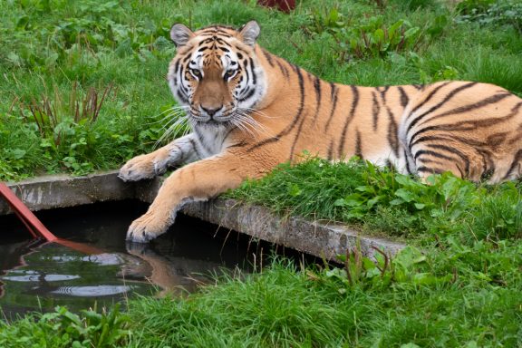Valesca is a very playful tigress, who likes to be outside. She also likes to play in her pond, where she regularly collects toys. She likes to lie a little hidden. She keeps a close eye on everything and occasionally scares someone.